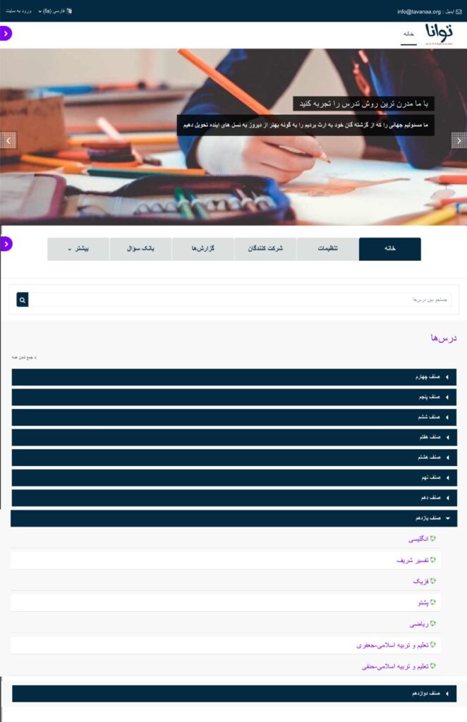 Tavana is an e-learning platform and it is designed to provide online school courses for afghan students, specially for afghan girls students since Taliban took control over all Afghanistan they banned girls from school beyond sixth grade. In this platform students can have free access to all courses and materials.